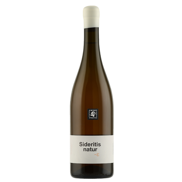 Tetramythos Sideritis Nature is a natural, organic orange wine from Aegialia, Greece, crafted from the rare, high-altitude Sideritis grape. It features aromatic profiles of mountain tea, lemon, and white flowers, with a salty, mineral-driven palate and soft tannins due to skin contact. It is produced with minimal intervention.